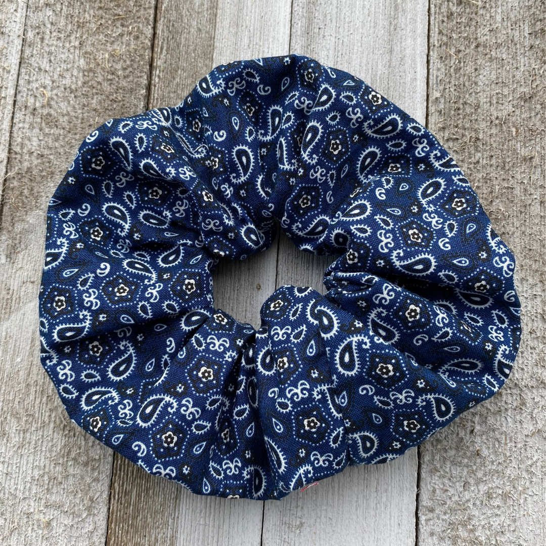 Blue Bandana Scrunchie Hair Tie Ponytail