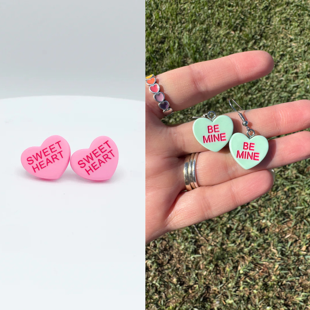Valentine Brachs Conversation Heart Stud and Dangle Earrings