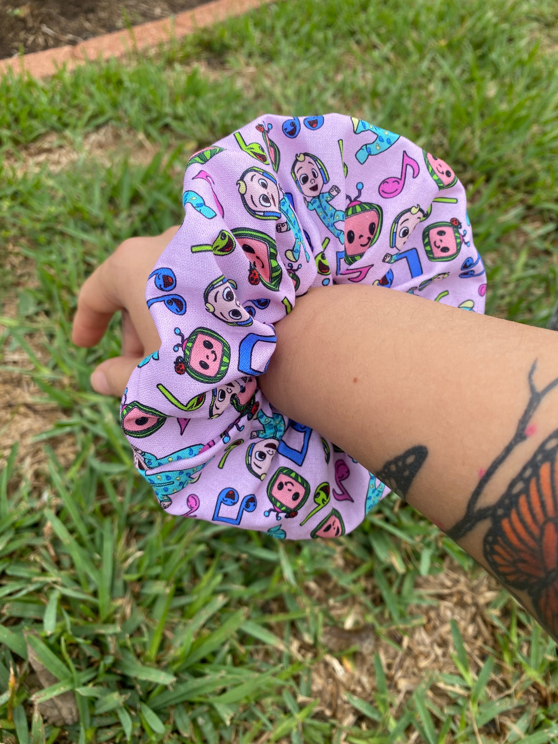 | This super cute scrunchie is a sure way to stand out. We always add more fabric then recommended to make sure it gets noticed even when you are wearing it on your wrist.